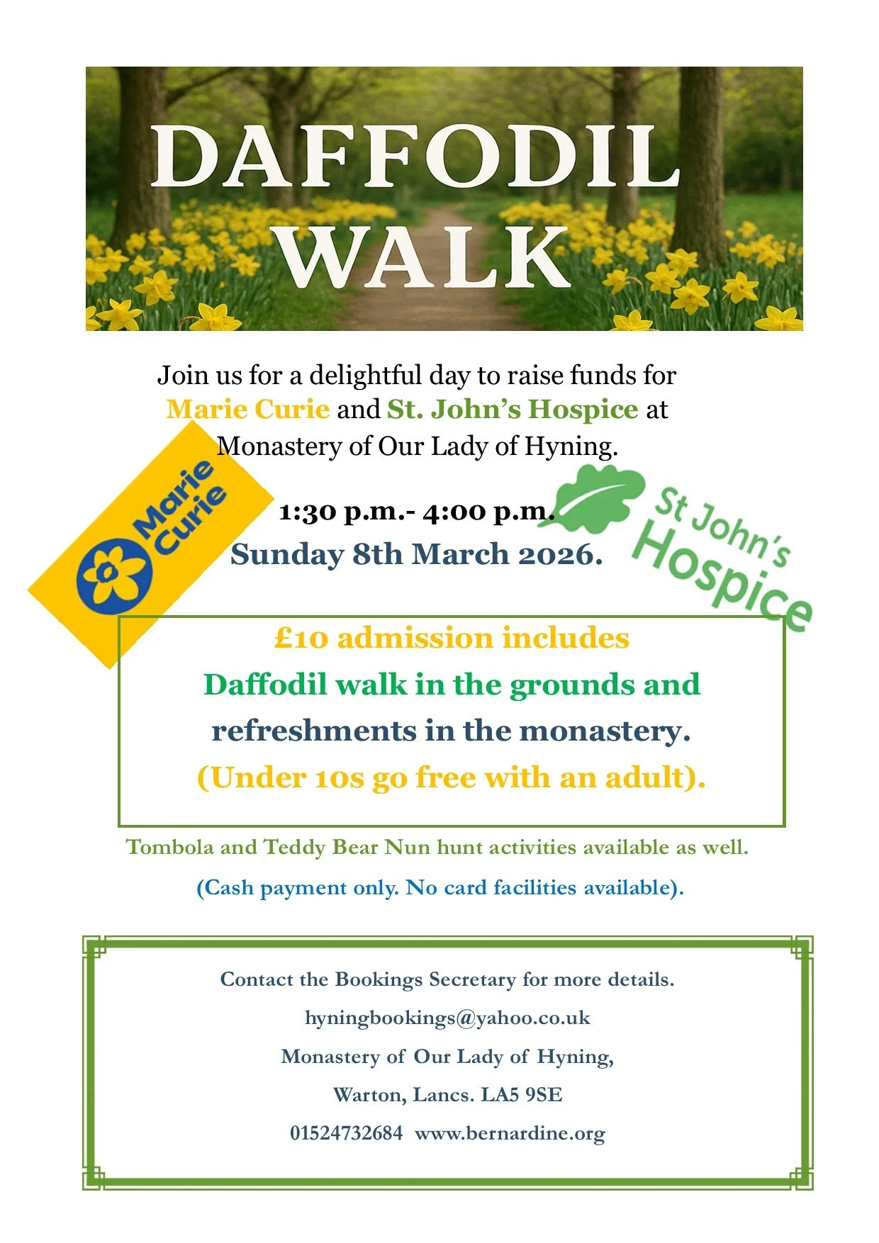 For more information, contact Sr. Mary Bernard hyningbookings@yahoo.co.uk